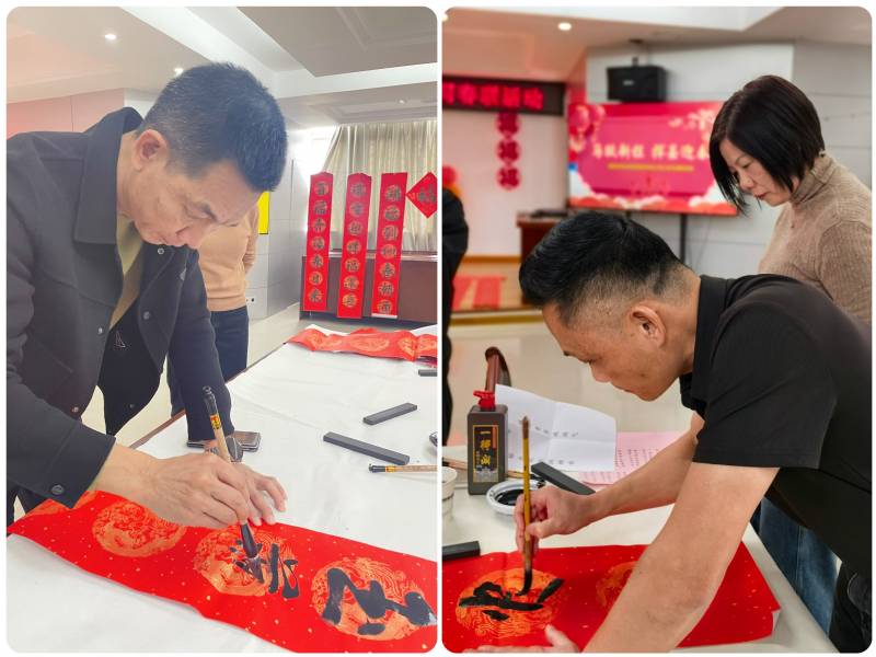 活動(dòng)現(xiàn)場(chǎng)暖意融融、紙墨飄香。集團(tuán)書法愛好者揮毫潑墨,以隸、楷、行等不同字體書寫春聯(lián)和“福”字?!敖瘃R迎春財(cái)運(yùn)旺,平安喜樂福滿堂”“岐山疊翠凝瑞氣,榕水歡歌潤(rùn)錦程”等一副副寓意吉祥的春聯(lián)在筆尖流淌,既傳遞出對(duì)新年的美好祝愿,也寄托著對(duì)職工們的真摯祝福。